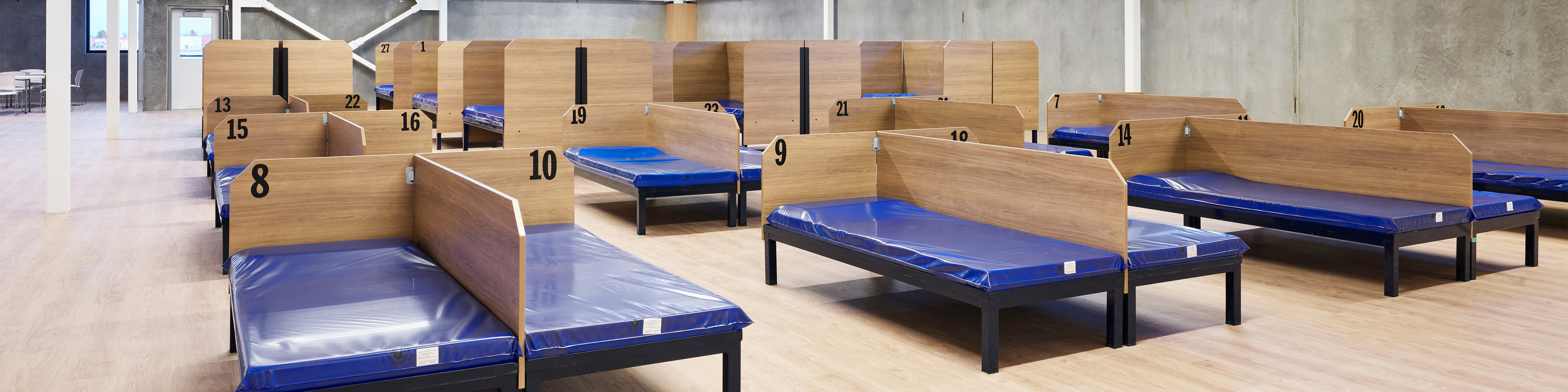 “Our dining room was also our sleeping area,” says Jessica Pulsifer, shelter operations coordinator, whose old office also functioned as a medication room and kitchen. “Someone could be sick and trying to rest in their bed while a few feet away someone was eating dinner.”